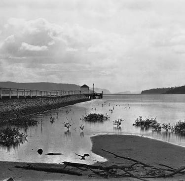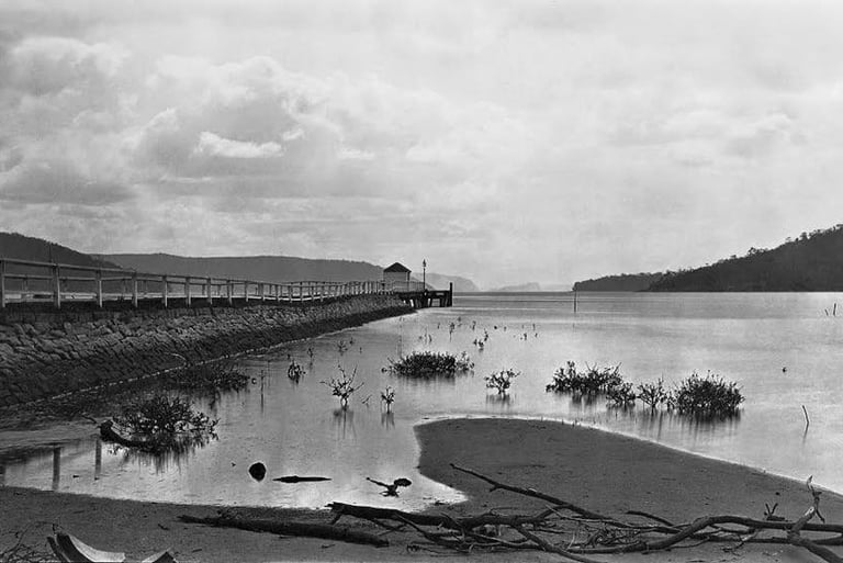 To tug you aboard that timeline, here are three vintage views that capture Careel’s watery wake – sepia sails from the stacks! First, the Careel Bay Steamer Wharf circa 1910: a sturdy timber pier jutting into the glassy bay, steamers puffing alongside launches laden with picnickers, the boatshed a squat sentinel amid mangroves – the first hub where fishing folk met ferry fun. It’s the estuary’s engine room, nets drying like flags of the fleet. (From Pittwater Online News; a high-res harbor hug evoking excursion era.)